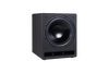 The MDF enclosure is heavily braced and assembled with rabbet joints for strong structural integrity. The enclosure is finished with a non-reflective and extremely durable textured material. An acoustically transparent fabric grille covers the front-firing 18inch subwoofer driver. Just below the driver on the front baffle is the high flow slot port with an edge radius. The amplifier is mounted on the rear baffle.