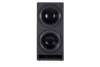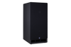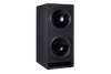 The MDF enclosure is heavily braced and assembled with rabbet joints for strong structural integrity. The enclosure is finished with a non-reflective and extremely durable textured material. An acoustically transparent fabric grille covers both front-firing 18 inch subwoofer drivers. A high flow slot port with an egde radius is located just below the bottom driver on the front baffle. The amplifier is mounted on the rear baffle.